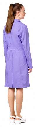 Халат полуприлегающего силуэта срельефами, сцентральной застежкой напуговицы, сотложным воротником илацканами, снагрудным ибоковыми карманами. Наспинке шлица ихлястик. Рукава длинные.