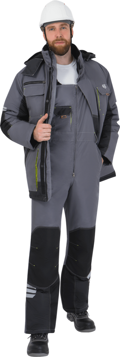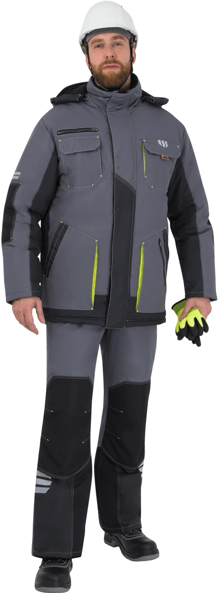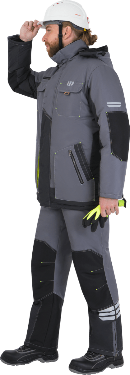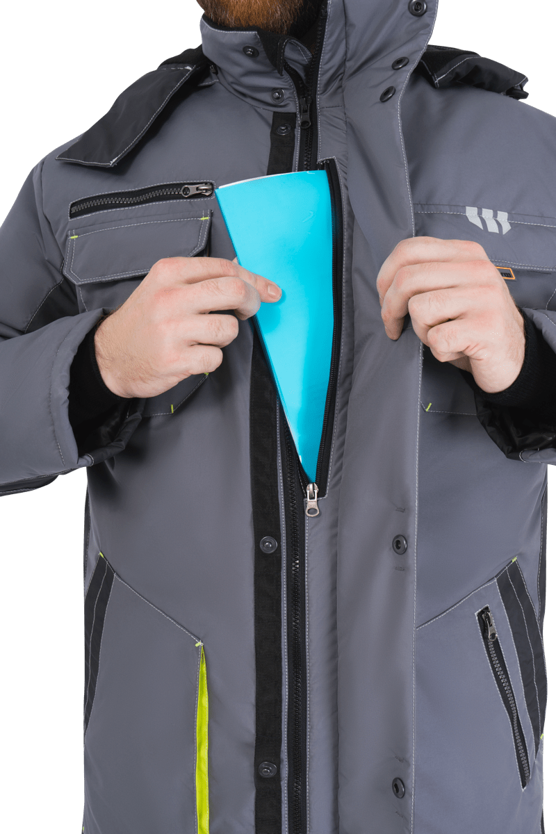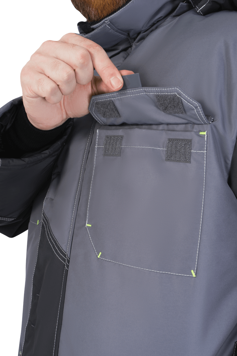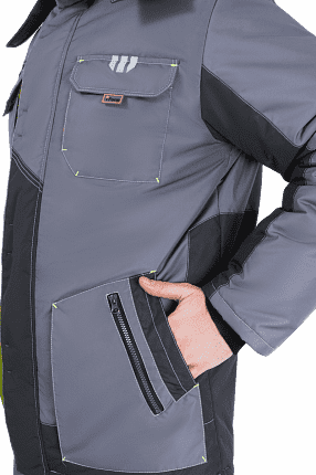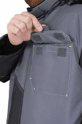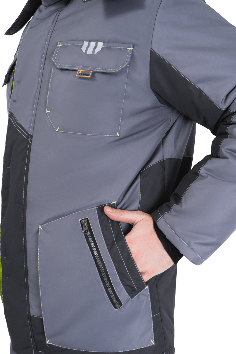 Куртка ЭДВАНС утеплённая, серый-т.серый-лимонная отделка
