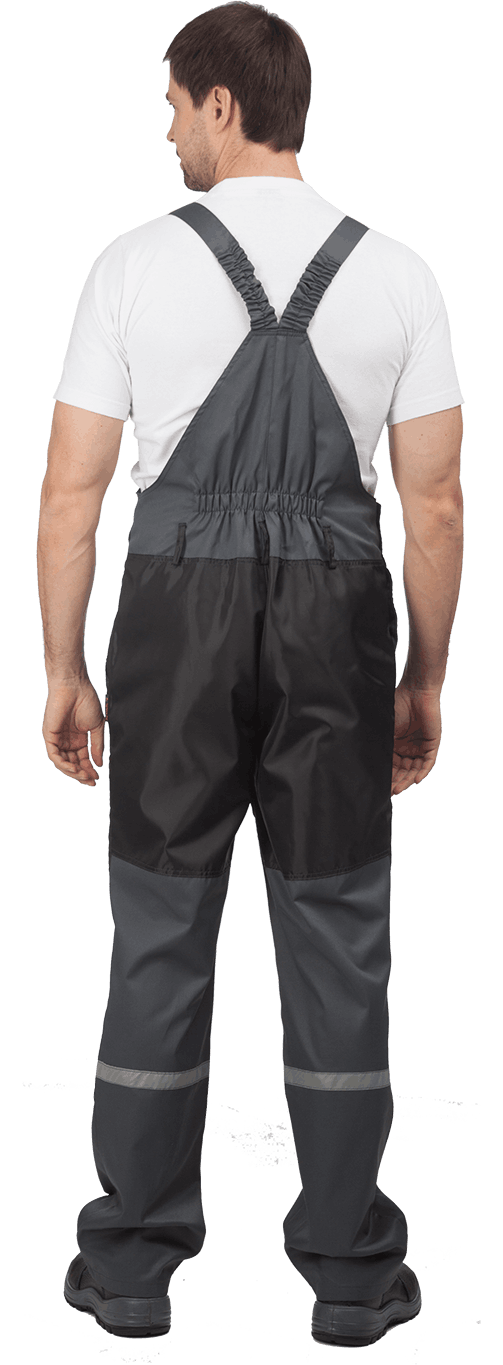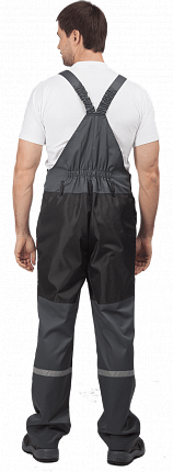 • передние и задние половинки брюк закрыта защитными накладками из влагозащитной