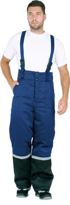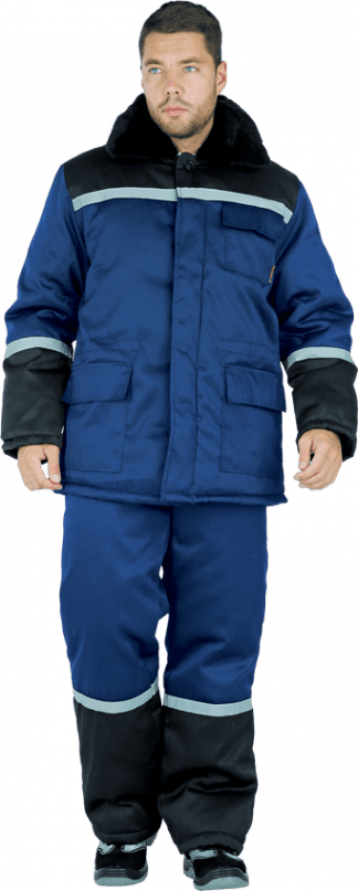 Костюм состоит из куртки и брюк. В костюме используются световозвращающие