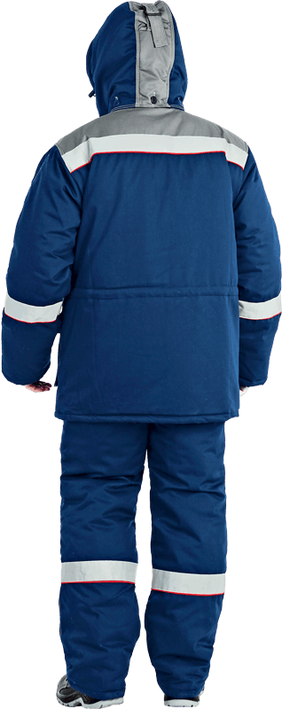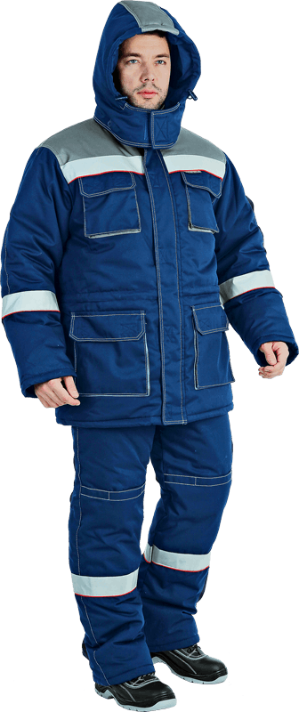 В костюме используются ветрозащитная ткань и световозвращающая лента (СВП) 50 мм.