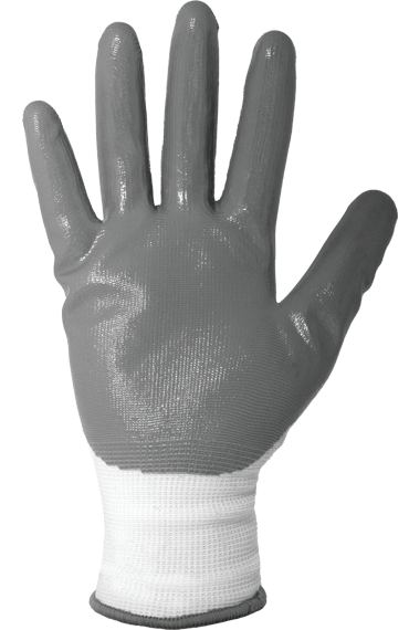 Бесшовные перчатки из нейлона повышенной прочности с частичным нитриловым покрытием. Покрытие защищает 2/3 поверхности пальца. Отличный «мокрый» и сухой захват предметов при работах, требующих повышенной чувствительности рук. Повышенная прочность основы. Рекомендованы при работах с нефтепродуктами где нет контакта с жидкими средами.